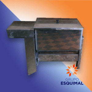 Esta maquina esta fabricada totalmente en acero inoxidable, mueble, batea, paletas, eje, bulones, con una capacidad de batea de 85 Kg (110 Lts) volcable .
