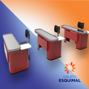 Están compuestos por dos bases, que son las que se encastran al piso para evitar cualquier movimiento. Un faldón frontal que se atornilla a las mismas. A su vez estos se vinculan a la carcasa superior, sumándose a la tapa de mesa para cajas, para dar la forma final del producto.